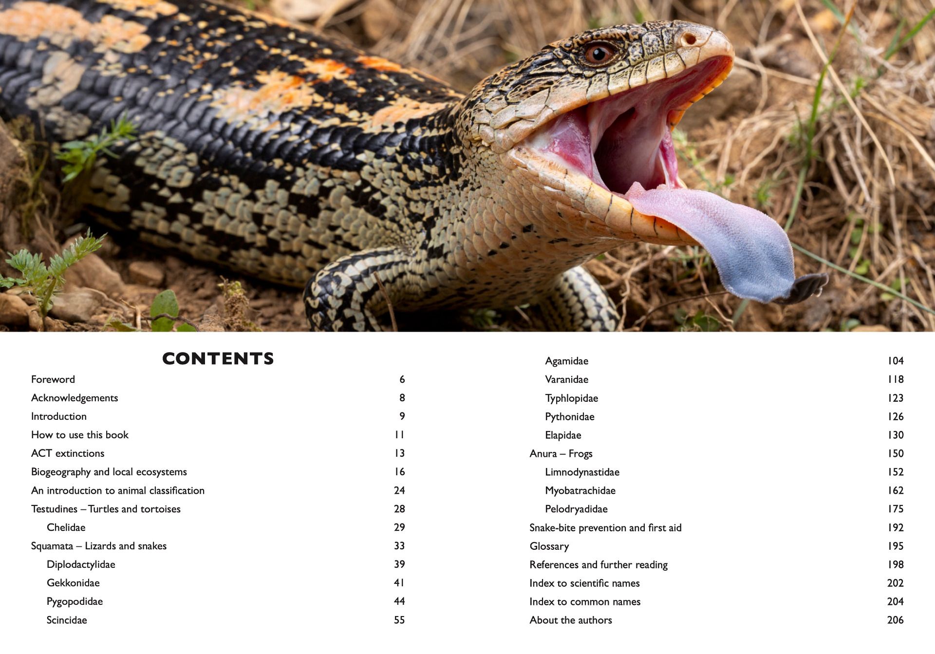 Covering every species of frog, turtle, lizard and snake found in the region – more than 80 in total – the guide is the ideal companion for anyone exploring this area. Canberra is recognised for its thoughtful city planning which incorporates an abundance of tree cover and urban nature reserves. Consequently, reptiles are well known to many of its residents, with several species – including Eastern Bluetongue, Delicate Sunskink, and the infamous Eastern Brown Snake – being common inhabitants of urban gardens. Nearby reserves also feature iconic species such as Shingleback Lizard and Eastern Bearded Dragon. Less familiar species include the rare and threatened Canberra Grassland Earless Dragon and Northern Corroboree Frog. All are covered in this guide.