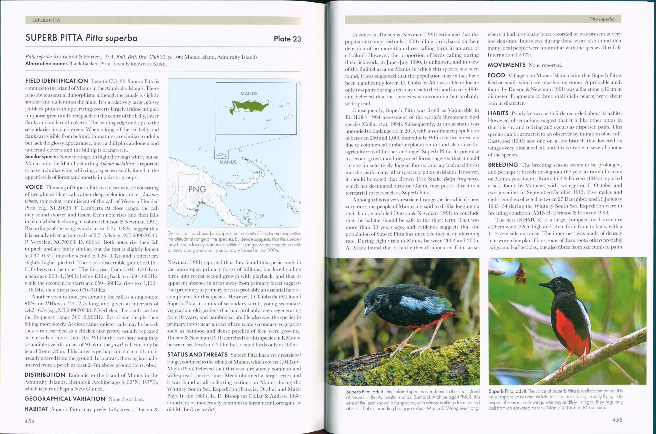 Pittas, broadbills and asities include some of the most beautiful, elusive and sought-after birds in the world. Inhabitants of tropical and subtropical forests of the Old World, pittas are medium-sized insectivorous terrestrial birds. Most are brilliantly coloured, and rather thrush like in their behaviour. They are generally solitary, and have a well-deserved reputation for secretive, skulking habits, adding to the challenge of seeing them in their often dark environment. The 52 species of pittas currently recognised largely occur from Asia through Wallacea, New Guinea and Australia, with two (perhaps three) in Africa.