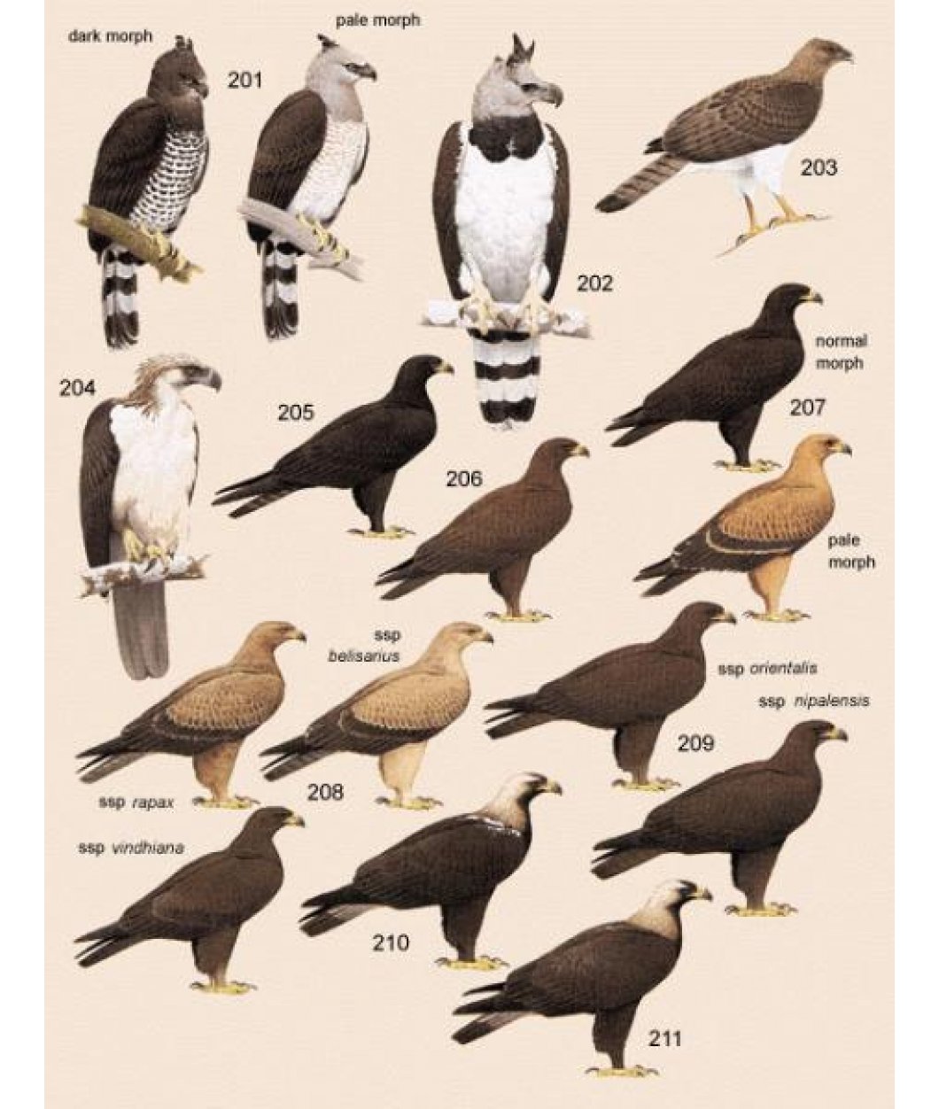 Volume 2 covers the order Falconiformes and Galliformes, and deals with the following families: New World Vultures (Cathartidae), Osprey (Pandionidae), Hawks and Eagles (Accipitridae), Secretarybird (Sagittariidae), Falcons and Caracaras (Falconidae), Megapodes (Megapodiidae), Chachalacas, Guans and Curassows (Cracidae), Turkeys (Meleagrididae), Grouse (Tetraonidae), New World Quails (Odontophoridae), Pheasants and Partridges (Phasianidae), and Guineafowl (Numididae). There are detailed family accounts, followed by concise species accounts with distribution maps. The text is comprehensively illustrated with colour photographs, and every species is illustrated on the colour plates. Over 7,000 bibliographical references are included.