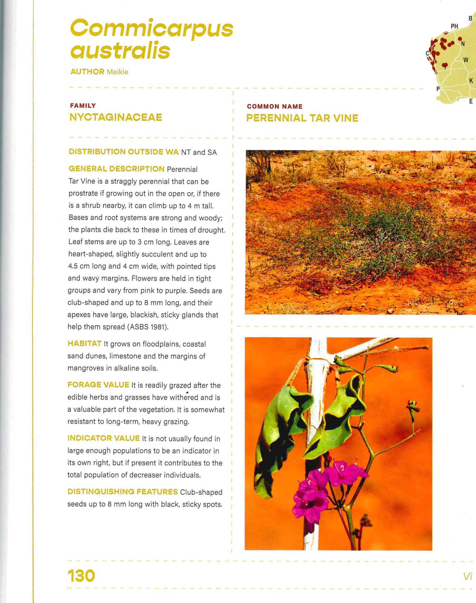 The first edition of this book was published in 1988 and the second edition in 1994. It has been out of print for approximately 20 years and this much needed third edition is very important as there is such a shortage of books on this subject and area. Weighing approximately 1.5 kg, it is an attractive and accessible guide to identification and appreciation of the native flora of the arid region of Western Australia, and describes over 300 species of herbs, climbers, grasses, shrubs and trees. Each species is illustrated in colour with maps, and the non-technical text gives vegetative and floral characteristics, habitat, forage value, the response to grazing and, where appropriate, the value of plants for degraded land and mine site rehabilitation.