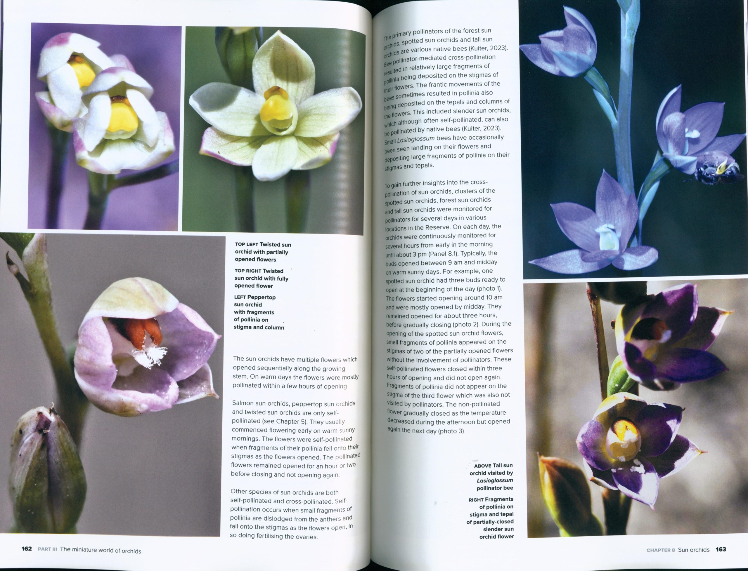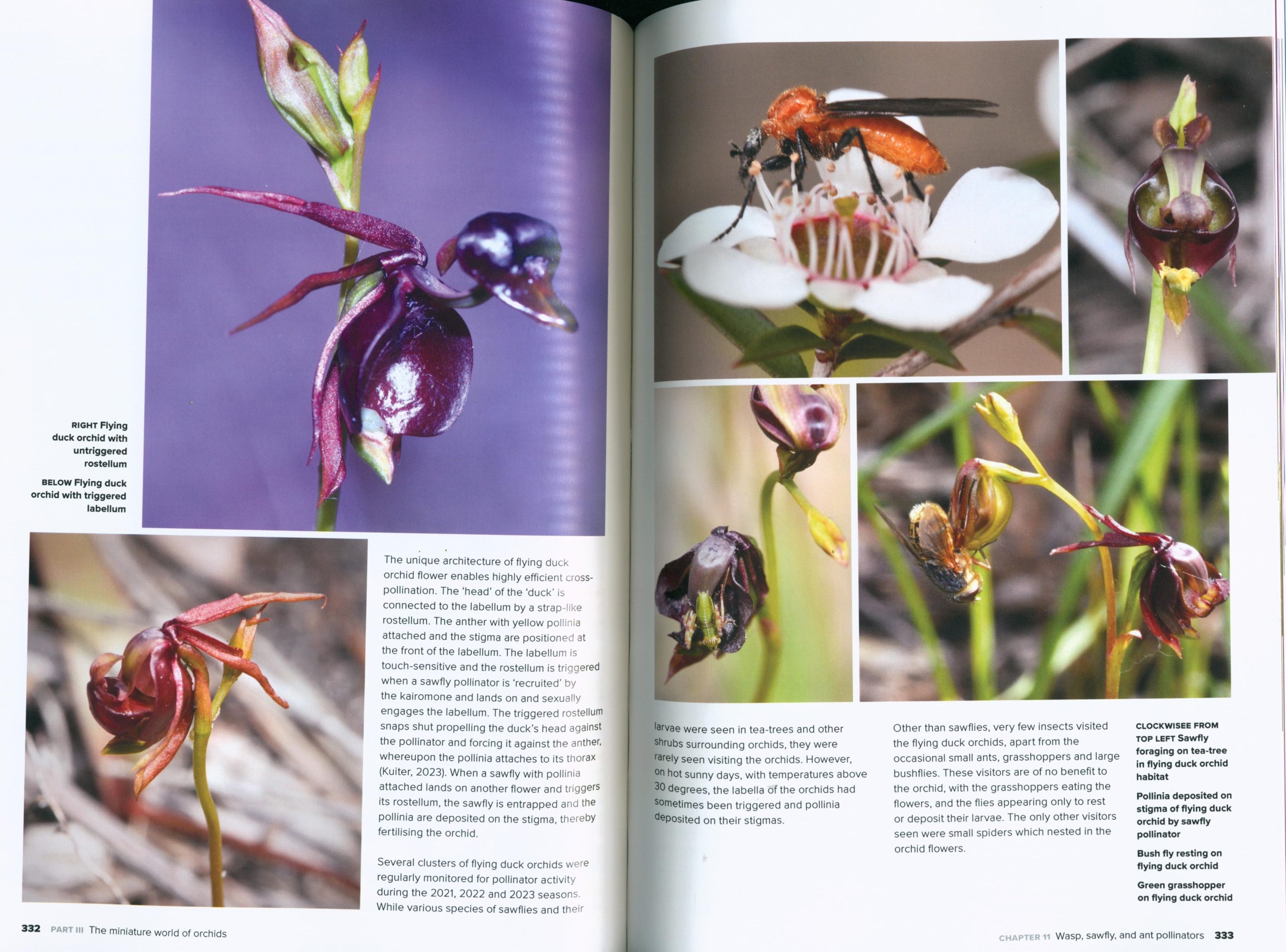The ecology of native orchids and their pollinators is the subject of Dick Wettenhall’s new book, Ecology of Native Orchids and Their Pollinators. The book is based on extensive field investigations carried out over several seasons. The investigations have revealed the complex functions, adaptations and associated biodiversification of orchid ecosystems in a single nature, which is located in a coastal region with a diverse range of topographical features, vegetation zones and associated microenvironments. The focus has been on the behaviour of the pollinators, their adaptations to different microenvironments, and their struggle for survival in miniature worlds where they co-exist with friend and foe insects and spiders. The book includes over 1200 photographs which describe the ecosystems of over 40 species of orchids. Also included are general chapters on the forest habitats investigated; when and where to find the orchids and their pollinators; cross-pollination of orchids; and environmental threats.