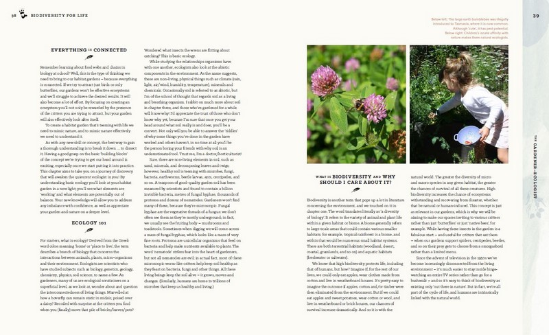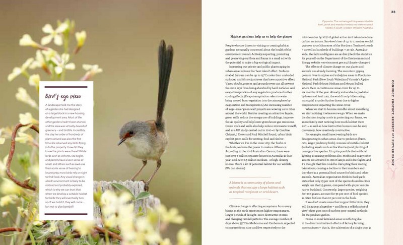 This information-packed resource includes a detailed plant directory; information on what plants (native and exotic) suit what creatures and why; and advice on how to factor in the shelter, nesting, food and water requirements of different types of wildlife. A practical projects chapter features step-by-step instructions for soil testing; making compost tea; building and planting a frog pond; and constructing nesting boxes and insect hotels.