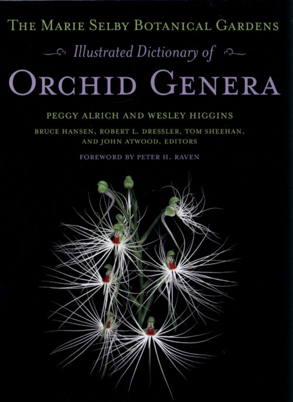 The dictionary describes not only all of the 850 orchid genera that are recognized today but also those genera known only from fossil records, published before Linnaeus, validly published (but not accepted), and invalidly published according to the standards of the International Code of Botanical Nomenclature, as well as those that have variant names or spellings. In addition to the alphabetic entries, this dictionary includes an introduction to orchid biology, a glossary, a list of taxonomists credited with publishing new orchid genera, key references and bibliographical abbreviation list, and the governing nomenclature rules. The Marie Selby Botanical Gardens Illustrated Dictionary of Orchid Genera also features a Foreword by Peter H. Raven and an Introduction on the biology of orchids by David Benzing that describes the August 2007 discovery of the world’s oldest unequivically orchidaceous fossil.