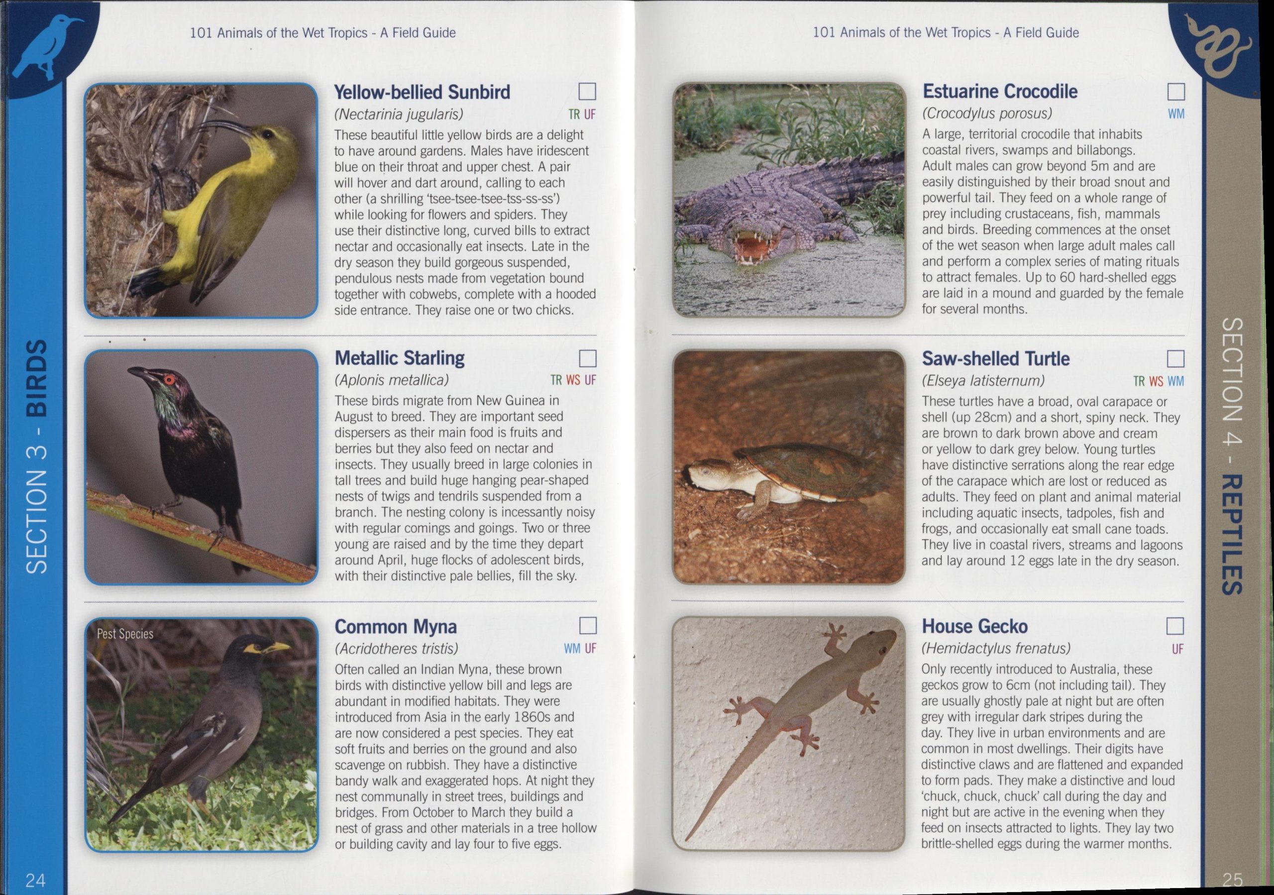 This field guide features the common animals that visitors are likely to encounter in the area and covers mammals, birds, reptiles, frogs and invertebrates.